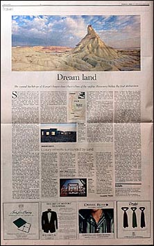 Le prestigieux journal économique et financier « Financial Times » a publié le 07 octobre dernier un article intitulé Dream Land (le pays des rêves) dans lequel sont vantés les extraordinaires paysages des Bardenas Reales.