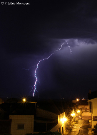 Voici donc la photo en question : On y voit les feux clignotants d’un avion F-18 effectuant un piqué vers le sol et se redressant vers le ciel après avoir largué une bombe inerte (à faible charge explosive). Il semblerait que cette photo soit la toute première de ce type réalisée dans les Bardenas.