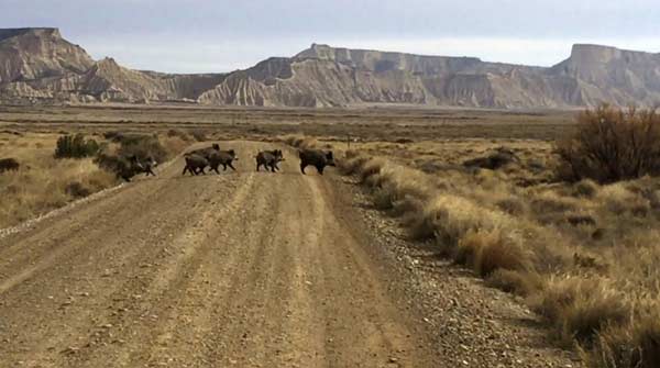 Les sangliers sont très nombreux au nord et au sud des Bardenas (Bardena del Plano et Bardena Negra), On en trouve également au cœur du territoire, dans la Bardena Blanca, bien que leur nombre soit moins important.