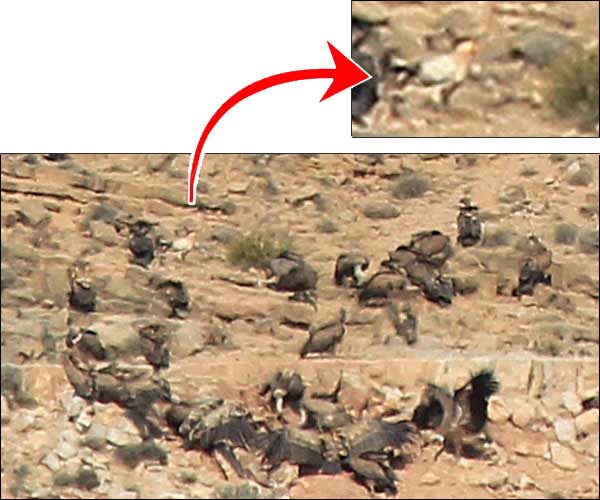 S’agit-il d’une brebis égarée ? ou d’un sanglier ? Ce qui est certain c’est que pour avoir provoqué l’hystérie d’un si grand nombre de vautours l’animal doit être assez imposant !